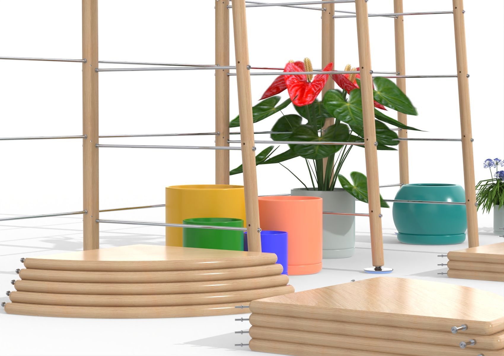 We call it Bio.frame because it brings together two fundamental ideas - biophilia and framework - to support the creation of indoor spaces shaped by botanical life. Made in quality Oak and Stainless Steel, Bio.frame uses a highly modular, freestanding framework that allows the making of living compositions that adapt to interior design preferences and different space types.